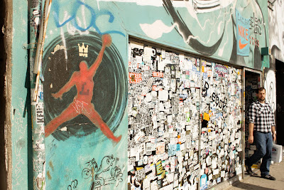 The front window of SportieLA on Melrose--before the complete buff.