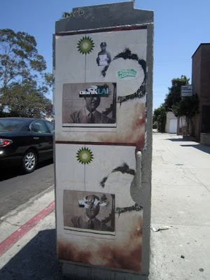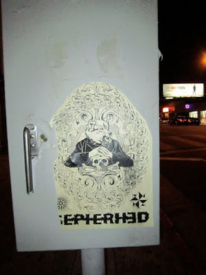 Kai is the son of Jungle Nutz who bequeathed Kai a prime wall on the family owned building just off Melrose. The big white canvas of a wall was a haven for street art and was always changing with fresh new art from some of the worlds top street artists. (earlier feature on wall http://melroseandfairfax.blogspot.com/2010/06/artists-like-flies-to-picnic.html )