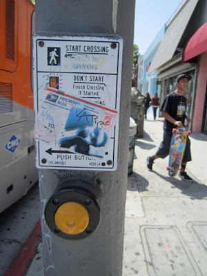 Kai has wandered around a few blocks close to the studio slapping stickers and wheatpastes over anyone. I have said it before, true artists make art. Hacks and haters try to make a name going over true artists and using that for leverage. The complete and haphazard manner that Kai has gone over all kinds of artists shows the true nature of where Kai is coming from--but his complete lack of awareness and knowledge of how the streets work is really fascinating--especially given Kai's 'street art' heritage. If Kai didn't like people painting on his family wall, well welcome to the world of street art where half the artists in the city will be aiming to cap his work.
