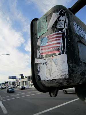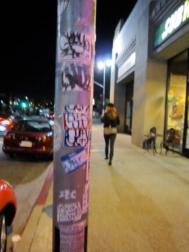 Free put those skills on display in front of a large crowd at the Marxist Glue show when he put up a massive sticker combo 15 feet up on a pole on 2nd street.