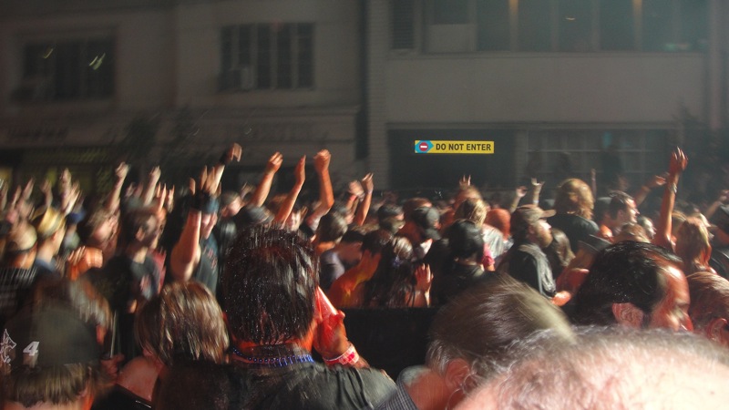 At the end of Motley Crue's set, the band and crew threw buckets of red 'blood' onto the audience.