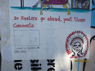 Bandit's piece takes aim at the Hipsters, sitting on their 'Hipster Thrones' writing anonymous comments online. But street art is a jealous genre, and from our experience, the most negative comments happen between artists shit talking to each other. . .