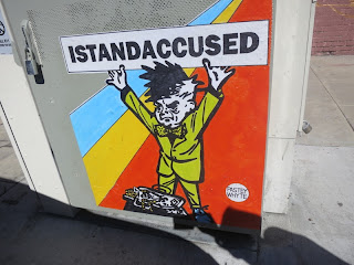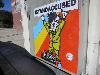 Pastey Whyte stands accused with a hand painted paster on Melrose.