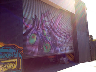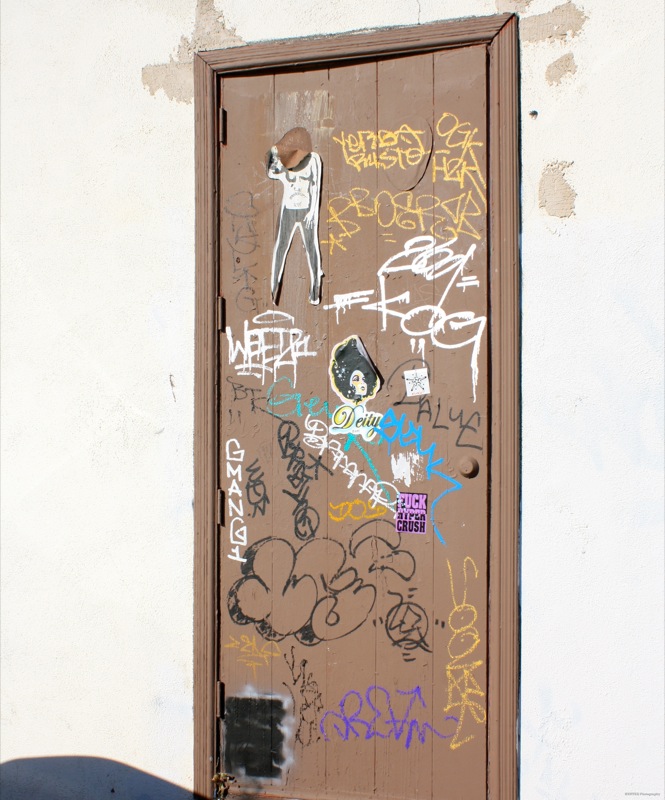 Indeed, the building to the right is a boarding kennel for dogs. Meanwhile, the wall on the left is loaded with a giant graffiti production with burners from Fishe LTK KOG and more that can't be made out!