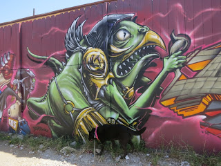 A graffiti squid with full tentacles gets painted by Brazilian artist Binho behind Melrose.